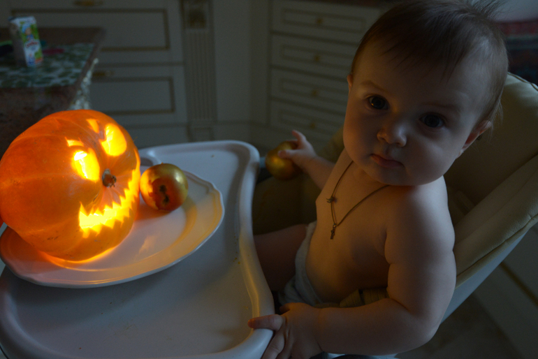 В первый раз в этом году мои руки добрались жо тыкв (благодаря прикорму)!Была у меня такая мечта поковыряться в этой рыжей пахучей инстанции)))Горошек тоже учавствовал,но фото с ним-ню,поэтому оставлю при себе)))А потом к нам приезжали молодые Горошкины няньки)Ну,мы с ними тоже немного пошалили))Кстати, получилось,что в этот же день праздновали др моего папы!По этому случаю я даже испоганила белый бодик!)))