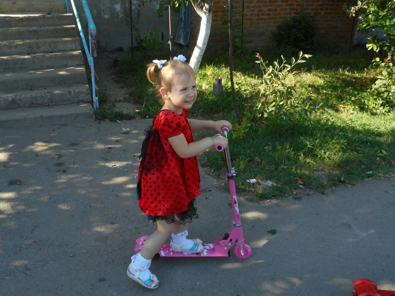 Радостная такая была,но первый вопрос как она открыла глаза был такой "Самокат где?"