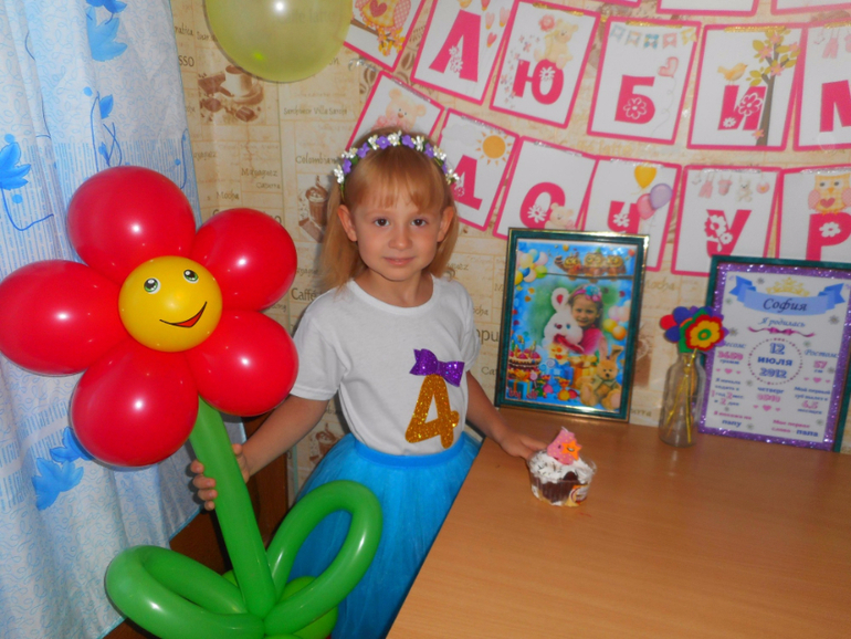 День Рождение отмечали в два этапа, первый 12.07 мы провели с дочкой весь день вместе,исключая только полтора часа с утра. Доставка шаров была на 7 утра, благо успели пока ещё спала малышка! Папа поздравил дочку цветами и уехал на работу.