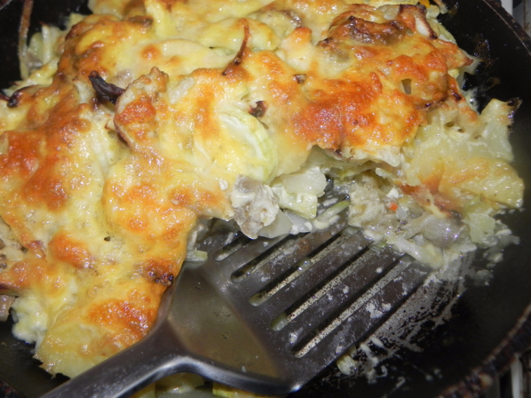 А это картошечка, просто оболденная получилась, я добавила туда овощи(главное кабачки,тогда она такая сочная получается,пальчики оближешь)