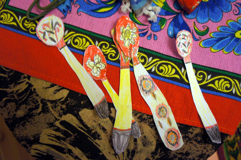 Торговля только меновая :) Так что Кики заранее "вырезала и расписала" кучу "деревянных" ложек :) Для обмена на другие товары :)