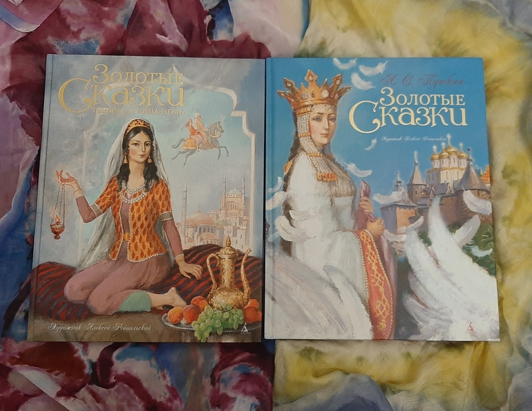 Два шикарных сборника больщущего размера в серии Золотые сказки от издательства Азбука с удивительными рисунками Алексея Дмитриевича Рейпольского. Волшебные сборники по содержанию и по качеству! Сборник со сказками А. С. Пушкина я даже не помню, как у нас появился. . Сама я его точно не покупала, скорей всего подарили дочке в начальной школе. Поэтому когда вышел сборник Пушкина с рисунками В. Назарука, я , конечно, немного посомневалась, но решила обойтись без дубля. И правильно сделала, на даче потом бука нашлась с рисунками Назарука)