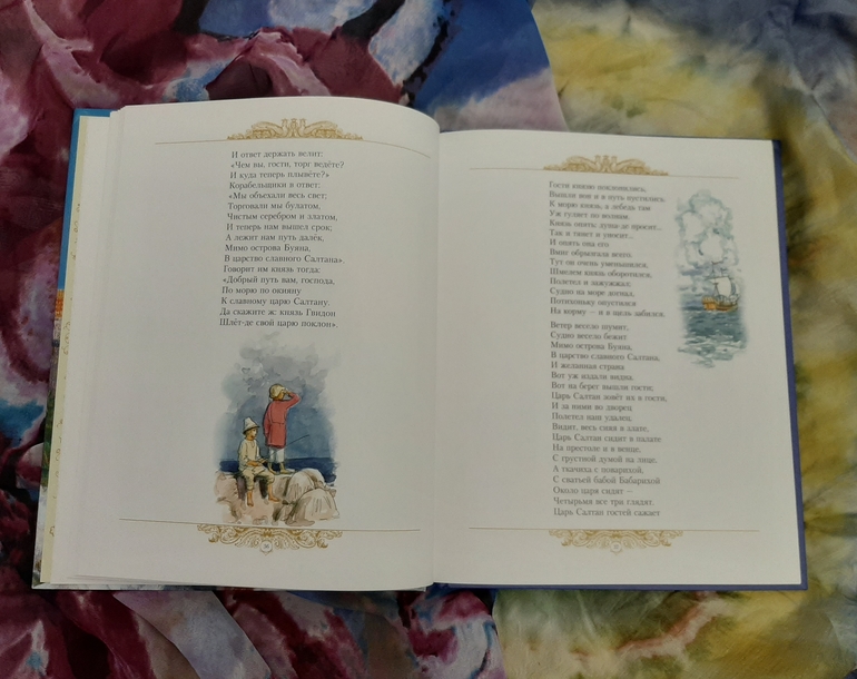 Шикарные, сказочные и точные иллюстрации отлично дополняют и иллюстрируют гениальный текст А.С. Пушкина. Сказки оживают сочными цветами, яркими красками, реалистичными персонажами!