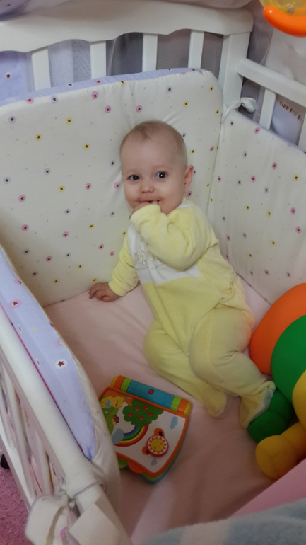 О физ.развитии написала, о еде тоже, о эмоц. развитии писала постом ранее, она жутко стала боятся посторонних людей и еще больше постороннюю обстановку. Изначально стала замечать это с тех пор, как приехал к нам в очередной раз мой брат со своей семьей, они обычно появляются у нас раз в 2-3 недели, так вот Даша стала с подозрением на них смотреть, а как только моя почти 1,5 годовалая племяшка выражала свои эмоции в голос, Дашулька начинала навзрыд реветь, у нее дрожали руки аж от плача. Если сам брат со своей женой пытались с ней заговорить, она тоже сильно плакала, даже если это происходило под конец их визита. Потом та же история в больнице с врачами, даже на прививке не плакала, а как только врач к ней обратится, то стоит дикий рев. На днях я поехала в гости к сестре, так Даша ревела всякий раз, как я спущу ее с рук, ее очень пугала незнакомая обстановка и моя сестра, которую она не видела около месяца, а как только мой 3-недельный племяш подавал голос, Даша голосила еще громче него. В итоге весь день, проведенный на моих руках и так и не привыкшая ни к чему и ни к кому Даша, при этом сестра не брала ее на руки, а потом даже не обращала на нее внимание. На следующей неделе муж уходит в отпуск наконец-таки и мы планировали втроем в первый раз выбраться в ресторан, теперь с ужасом себе это представляю, ну дай Бог все будет хорошо.