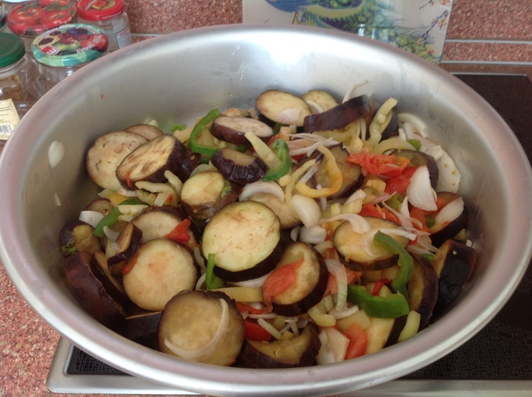 Закинули все домой, и мои поехали в кино на Охотники за привидениями, я дома осталась по хозяйству полетать. Наварила салата из баклажанов