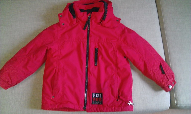 Красного цвета, зима. Носили активно. Нет одной кнопки на застежке капюшона, могу отдать запасные.
