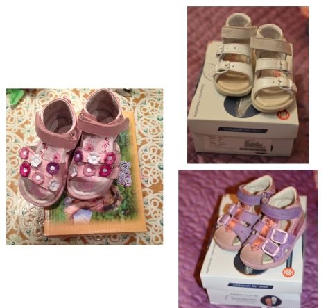 1) Сиреневые ортопедические, очень легкие сандалии для девочки Minimen, размер 18. Натуральная кожа, состояние отличное. 2) Белые Ортопедические сандалии для девочки фирмы Minimen, 18 размер белого цвета. Натуральная кожа.3) Ортопедические сандалики с цветочками 21 размер, кожа, производитель Prince pard.Цена 1300 за все.