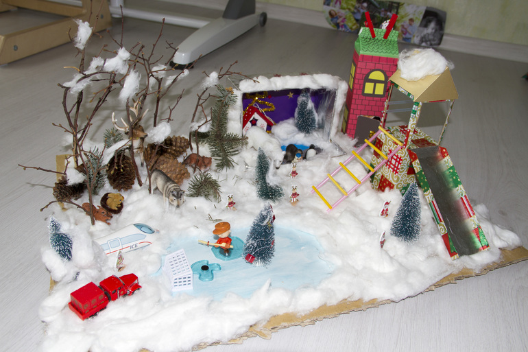 Ой, совсем забыла сказать: у нас получился даже не городок, а скорее зимовье зверей и детская площадка. Ну, ладно, продолжим) Покажу отдельно каждую область.