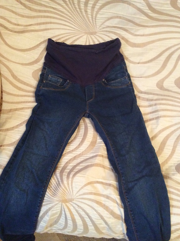 Есть 2 пары хороших джинс для беременных. Размер 42, рост высокий, мой рост 158см и я подворачивала, не обрезала. Одна пара более лёгкая джинса: носила летом и осенью до родов, есть нюанс маленькая дырочка, но её можно зашить, в глаза не бросается. Состояние хорошее. Вторая пара более тёплая джинса, носила зимой после родов, пока живот не убрался. Состояние отличное. Джинсы счастливые, для тех кто понимает.