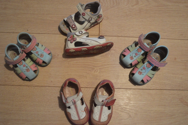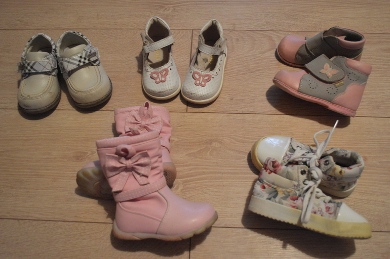 кроссовки Адидас ,рядом с резиновыми сапожками,фото 6 туфельки внизу Зебра кажется, фото 7 туфли orsetto все по 250р., они по стельке 16см