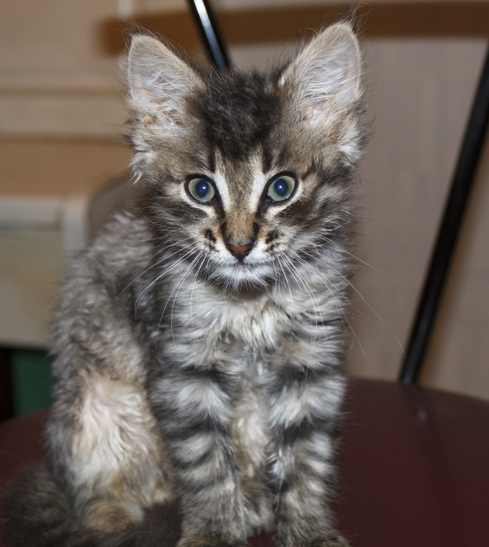 Месяца 2-3 ему. Про пушистость не скажу,не разбираюсь. У нас перс и мы её подстригли в июне и сейчас нам счастье. Чесать не надо,шерсти нет по квартире и мебели и ей в жару хорошо. Свою глистогоню празицидом для котят ( беру суспензию ) . Удобно вводить из шприца в уголок рта. Из еды наша ест вискас для котят влажный и кормлю детскими пюрешками мясными ( т.к. меняются зубки ). Остальные корма не ест. Пыталась перевести на Хиллс или РК,но она не ела три дня ничего и пришлось оставить вискас. Ветеринар сказал — ну и пусть его ест тогда. Сухие корма тоже не ест.
