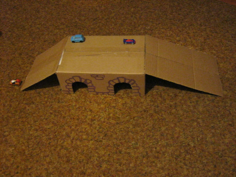 Тут у меня сдохли батарейки, а дети продолжали играть. Сами, весело и дружно. И аккуратно сложили кубики обратно в ящик, и, поскольку уже не было смысла затевать какое-то "творческое занятие", я просто доделала изготовленную за день до этого игрушку, дети помогли прикрепить к коробке с "туннелями" боковые поверхности - горки и долго играли с ними, катая мелкие киндеровские машинки. В награду поставила им мульт и пошла готовить обед, умиротворенно думая о том, какая это хорошая штука - детский сад, не подчиняющийся никому и ничему, кроме собственного чувства целесообразности. Никуда не убежит от нас эта плановая поделка, найдется для нее время, когда не будут клеиться у детей игры и общение, и она послужит отличным переключателем настроения. И для того, чтоб научить детей чему-то не нужны тщательно продуманные планы с неотвратимой необходимостью неукоснительно их придерживаться, потому что если есть желание научить, это произойдет как бы само собой - и время вдруг найдется, и интерес у детей возникнет.