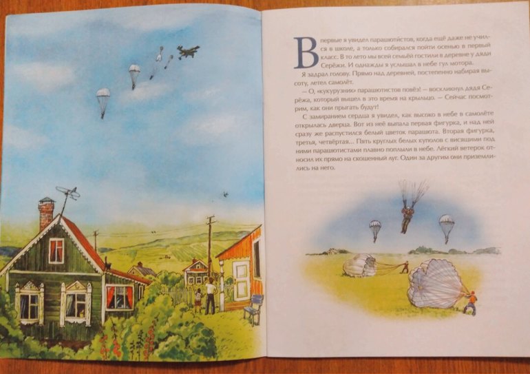 Автор рассказывает свою историю - как увидел он в детстве над деревенскими крышами самолет, увидел раскрывающиеся купола и захотел прыгать.