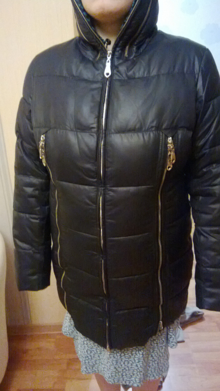 на размер 48-50-52 с капюшоном (идеально для тех,кто не любит шапки)