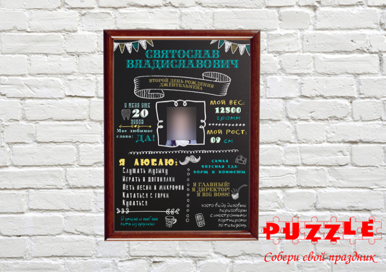 Каждый плакат разрабатывается с учетом особенностей стилистики оформления праздника, для определенного именинника.