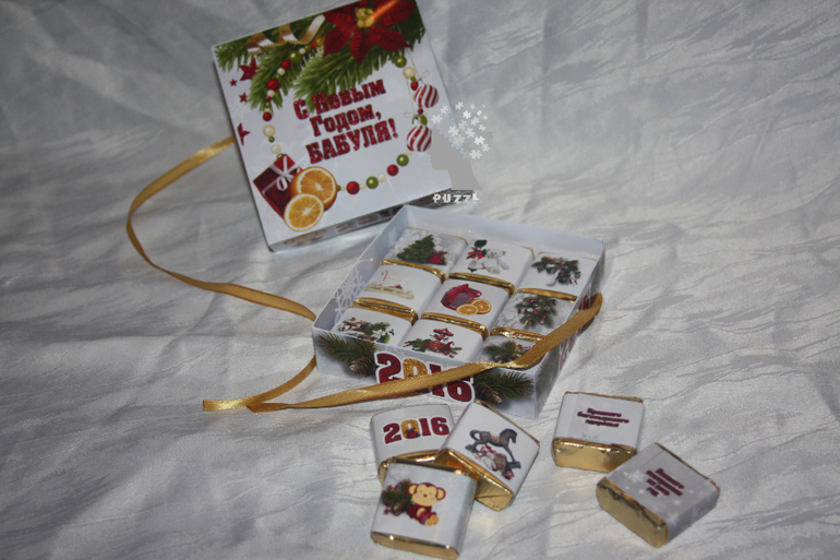 Коробочки на 12 и 18 конфеток "Птичье молоко" с пожеланиями на обороте, этикетка каждой конфетки не похожа на другую. Все пожелания разные. Отличный подарок к Новому году родным и близким.