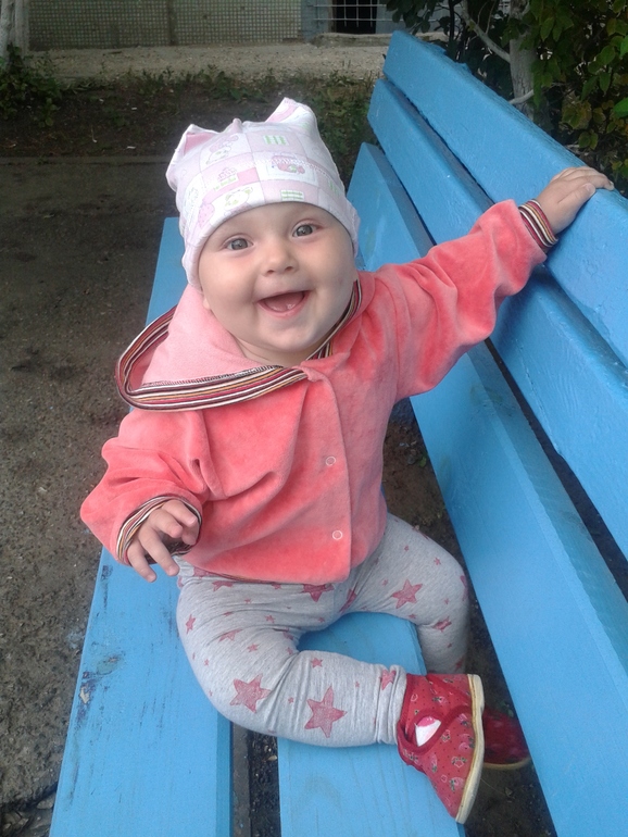 На улице, как только коляску останавливаю, проситься из неё, походить, посидеть. Обожает качаться на качельке, со мной или без меня.
