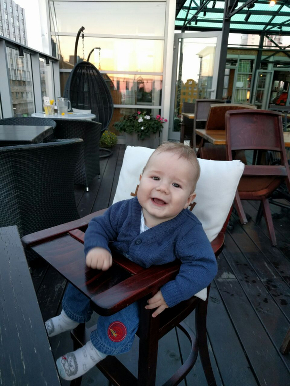 Прикорм: отсутствует. Иногда в кафе могу дать кусочек чего-то не особо вредного из своей тарелки. Тыкву, морковку, картофельное пюре, листик укропа. Если кусочек слишком большой - давится и срыгивает.