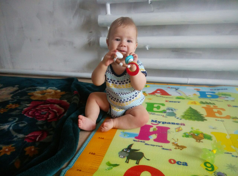 Как Тим развивалсяНу всё, можно официально заявить - Тим сидит. И садится) Он решил совместить эти два умения, а не начать с просто самостоятельного сидения.