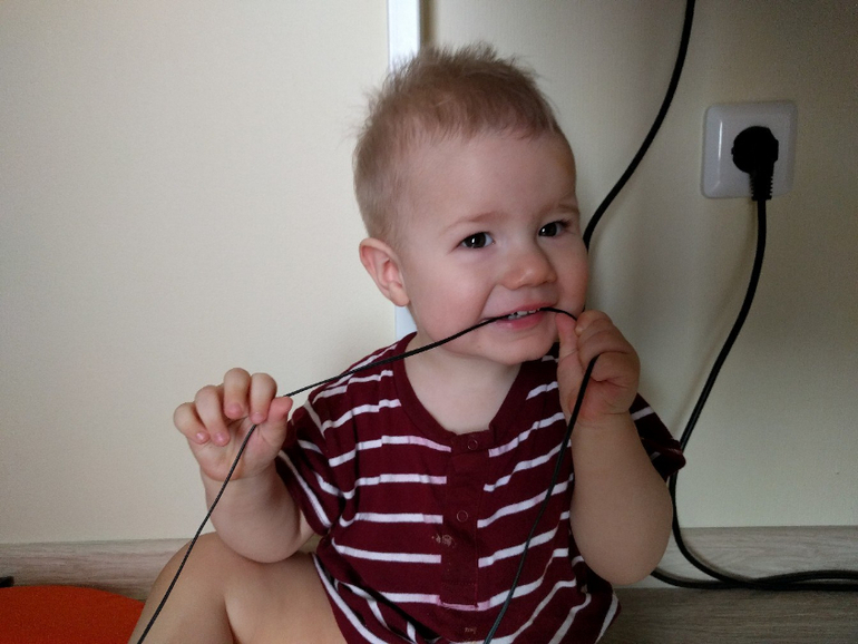 Также научился вставать сразу с пола, без стены/кровати и других вертикальных опор. Может наклониться за предметом, но не всегда получается сохранить равновесие при этом. В обуви ходит хуже, чем босиком, сандалики свои не очень жалует, но покорно терпит.