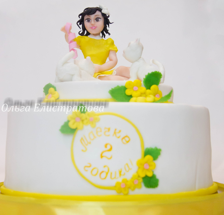 Добрая история: заказали торт в подарок малышке на день рождения от бабушки из Воркуты)) Очень здорово было привезти торт ничего не подозревающим родственникам))) И, особенно ценно-разрешили делать на свое усмотрение дизайн) Поэтому получилась милая девочка с кошками (именинница любит играть со своими двумя любимицами)