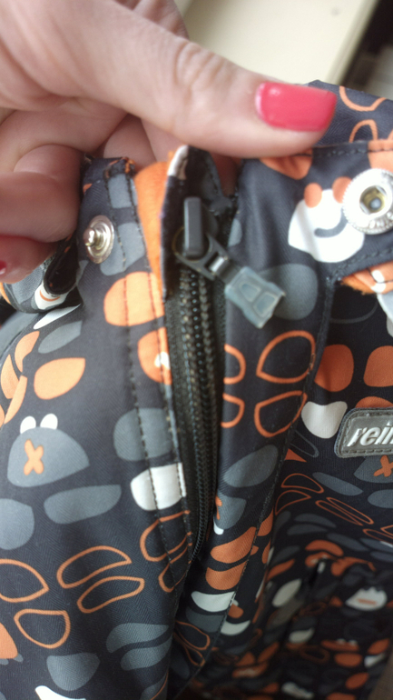 Все деффекты сфотканы. С застёжкой старшенькая постаралась- перестаралась( на функционал не влияет), потёртость-это мы так зачётно рухнули , разинки-фиг знает как и почему, старшая до 8 лет в рейме выросла и такого не случалось, а тут ...
