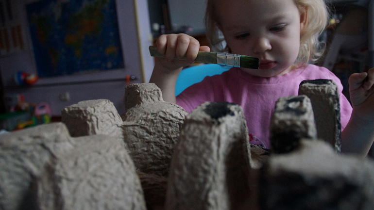 Всякий раз не устаю поражаться простоте и гениальности методики Марии Монтессори. Порой не надо что-то изобретать, готовить пособия, достаточно взять то, что под руками. И проявить немного фантазии. Вот один из наших Монтессори-понедельников, на момент проведения Ане - год и 9.