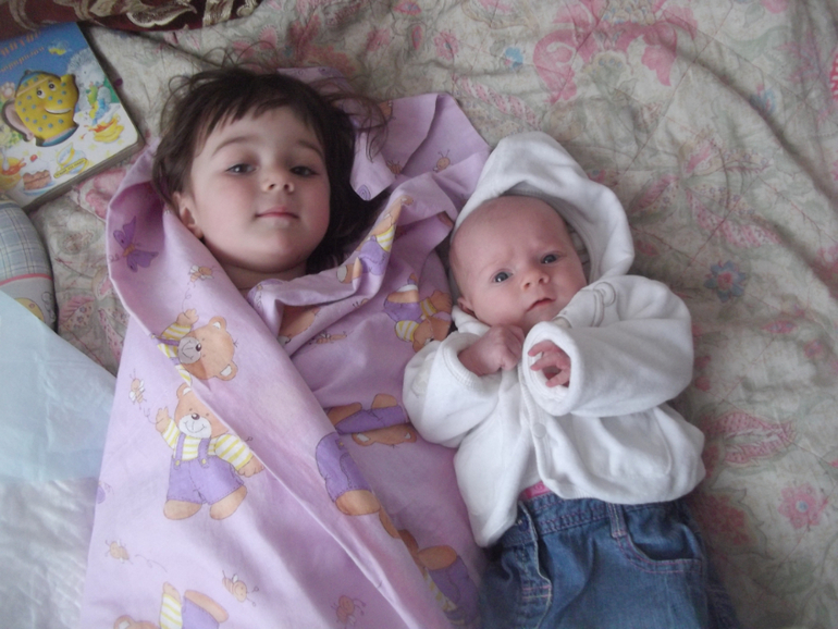 Вот и прошел первый месяц нашей новой жизни. Жизни, в которой нас уже четверо...Я очень боялась и переживала о том, как это все будет. Как Саша воспримет малышку, как я с ними справлюсь одна, как найти время для всего...вопросов было очень много, я честно старалась как можно лучше приготовиться, читала, думала...но все равно, на все 100 готовым не будешь))) реальность оказалась не такой страшной. Сложно было примерно недели 2..а потом-вообще красота. Конечно, сил уходит много-Сашуля не ходит в детский сад, времени на себя не так уж и много....но все равно, когда Саша была новорожденной, мне с ней одной было намного тяжелее, чем с ними двумя. Сейчас ревность у нас проявляется все так же в форме регресса (постепенно сходит на нет),а также истерик и капризов (тут больше кризис 3х лет). Сестричку Александра любит, стащила все ее комбинезоны-одевает их на кукол и пытается заполучить себе люльку -коляску Олину...в быту спасают здоровый пофигизм, а также мультиварка, слинг и иже