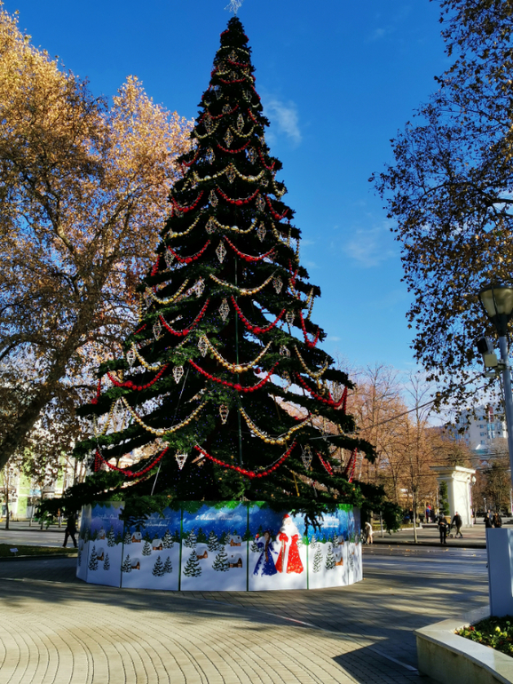 В Краснодаре у нас было немного времени, прогулялись по главной улице. Город красиво украшен и погода такая хорошая была.