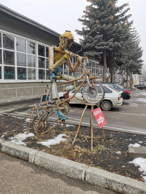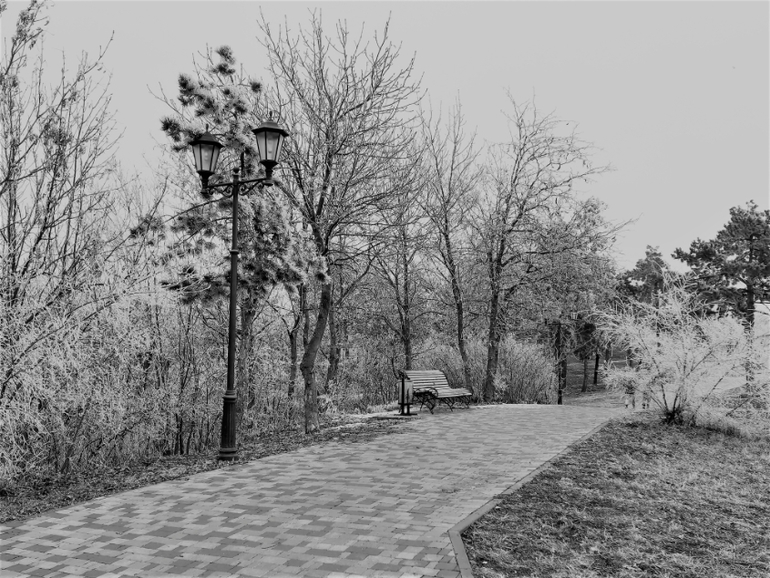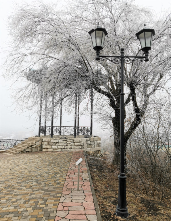 Во второй день пошли гулять в парк "Цветник". По дороге встретили фонтан "Деды" (или "Гномы"). Зимой невзрачненько. Летом красиво, наверное.