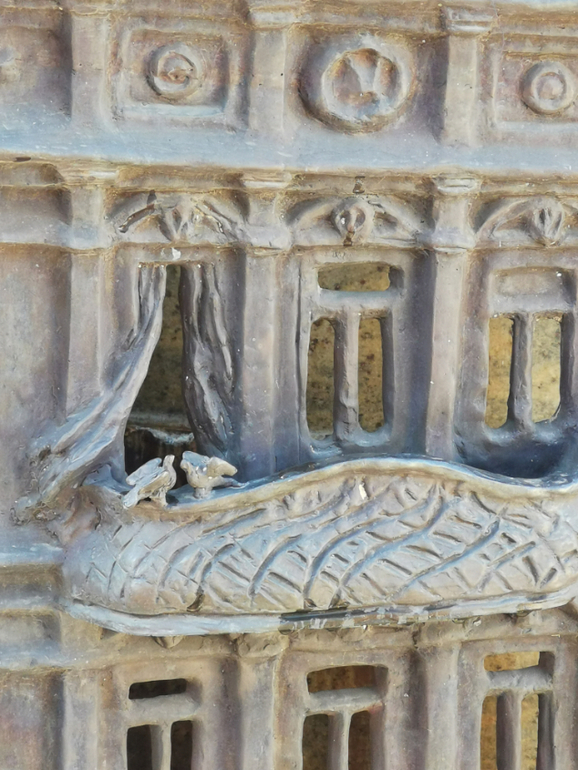 Очень понравился фонтан с горельефом. Он не работал, летом, наверное, очень красиво выглядит.