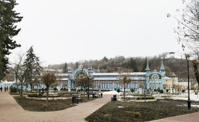 В Цветнике в глаза сразу бросается Лермонтовская галерея. Очень необычное строение. Галерею построили в 1901г. Сейчас здесь располагается филармония, проходят концерты, выставки.
