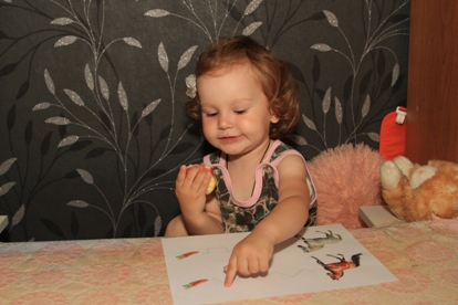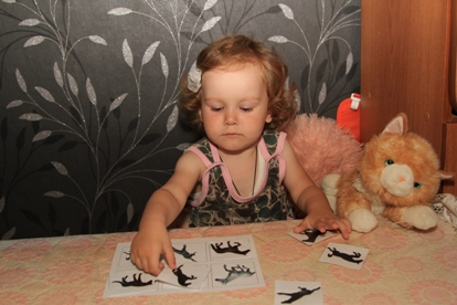 Впервые поиграли в домино. Суть Алена поняла правильно, с удовольствием искала необходимое изображение и продолжала нашу змейку.