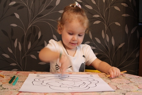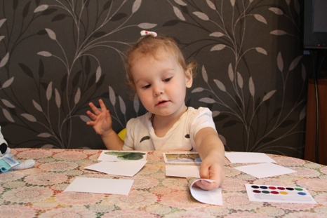 Затем занялись палитрами. Идею таким образом соединять подсмотрела у замечательной мамы Евгении. Такой способ предложила Алене впервые, сначала не очень-то получалось, потом уже приноровилась.