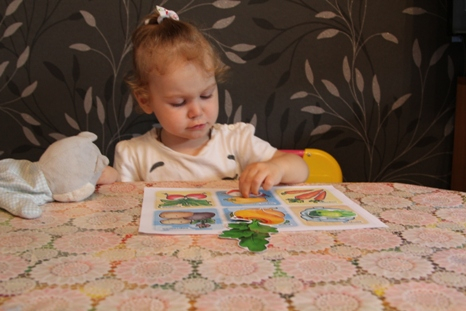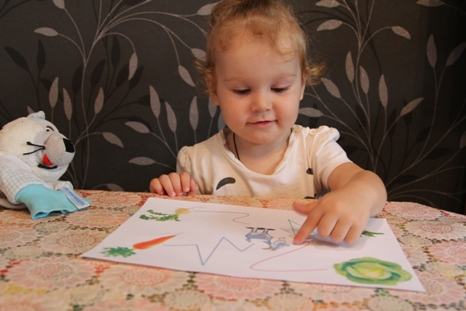 Пальчиком провожали козлика к овощам, не очень-то пока получается.