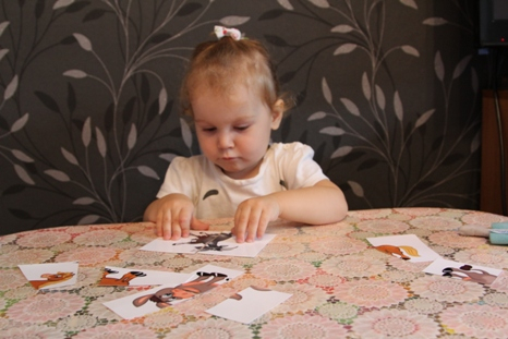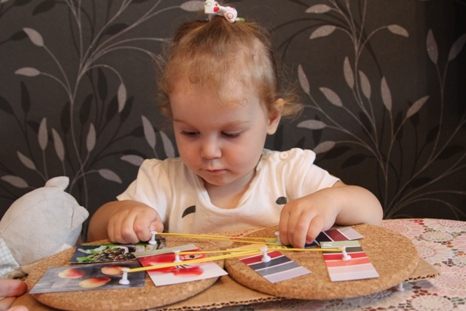Пазлы из 2 и 3 элементов Алена собрала, а из 4 я активно помогала собрать.