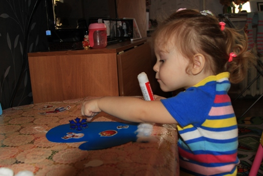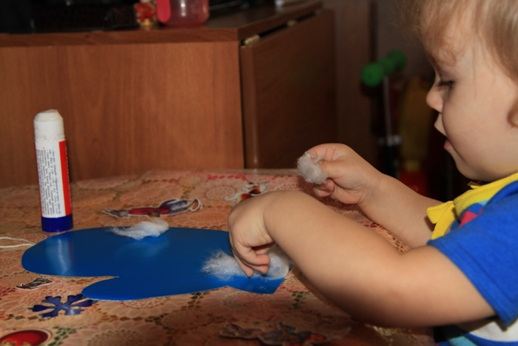 И на следующий день еще с варежками поиграли. Собирали мелкие предметы в варежкам, получалось очень ловко.