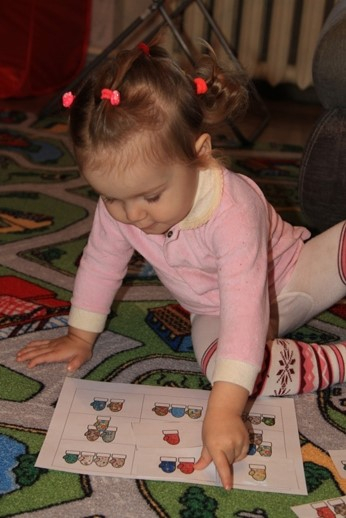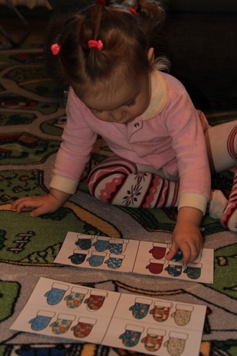 А вот математическое лото тяжеловато пошло, сразу разложила где по 1 и по 2 варежке, остальное вместе.