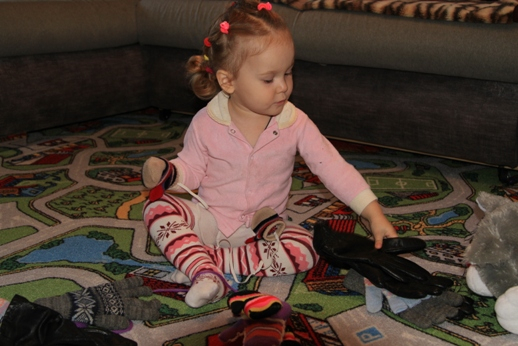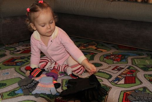 ТЗВ этот раз мы играли по материалам Софьи со всеми варежками и перчатками, которые нашлись в доме.