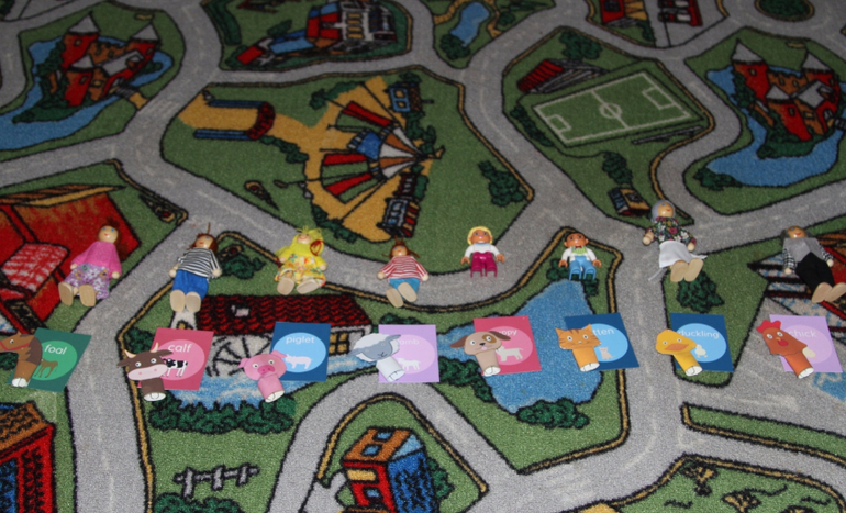 Итак, первая песенка My Family and Me. Мы сначала посмотрели видео, дабы вникнуть в содержимое песни, затем проигрывали с фигурками и заодно запоминали как кто называется.