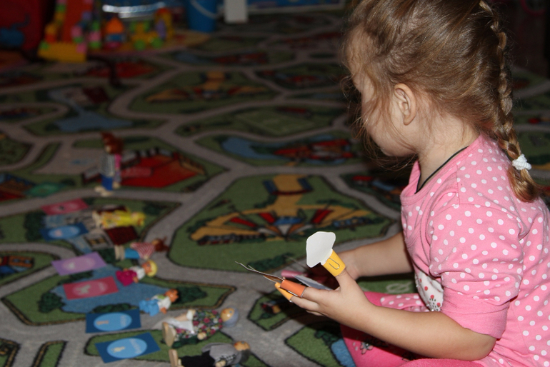 С фигурками проигрывала сначала я, затем пару раз Алена. Песенка легкая, проблем с непониманием думаю у дочки не возникло.