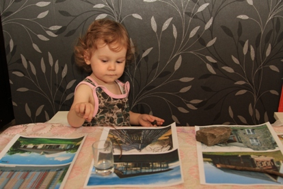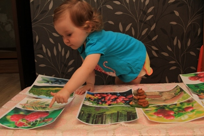 Я Алене сообщила, что сегодня у жителей теремка чаепитие, и мы достали наши баночки с ароматами: черный чай, мелисса, мята, ромашка. Алена расставляла баночки по карточкам. С одной баночкой сомневалась, остальные верно поставила.