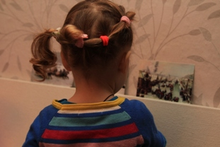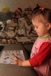 Подбирали заплаточки и культурно просвещались одновременно. Заплаточки Алена подбирает правильно, но не всегда получается поставить все ровненько.