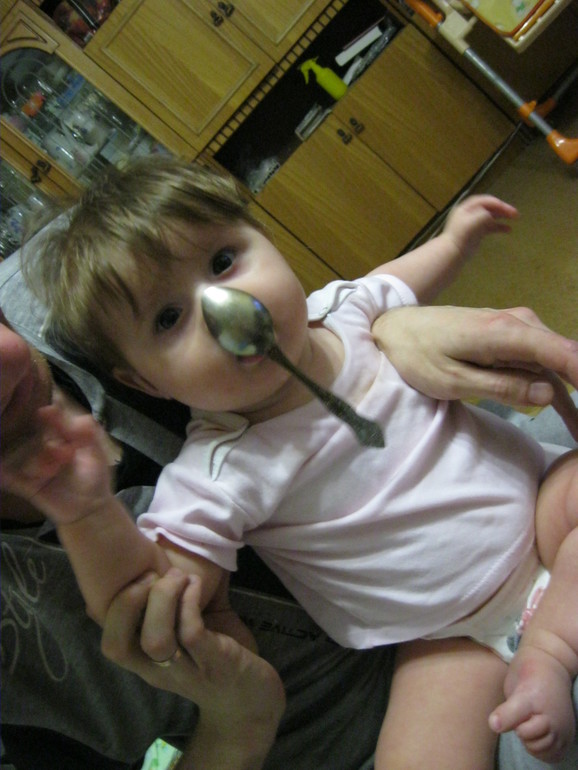 Первый пост день в день ( спим пока, погода располагает)) Нас поздравили, принесли нам игрушек -одёжек новых) А я пошла и купила поильник, ибо из бутылки не пьём, а из чашки пьём, но больше проливаем... А водичкой допаивать придётся, ведь кашку кушаем уже почти норму... А Лизке вся эта суета по барабану)) Ничего особо нового не случилось, стали произносить слоги: бу,ба,да, пу, пуф и какие-то немыслимые) Очень ей нравится я-кать: яяяя- и улыбается) Из прикорма кушаем безмолочную рисовую кашку, послезавтра дам ложку гречневой попробовать) А вообще стала такая хрюшка классная)))
