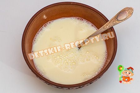 2. В чаше перемешиваем яйца с молоком, присолить.