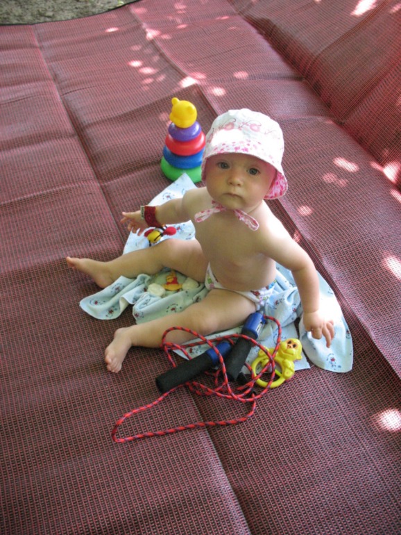 Пыталась стимулировать ползанья за мячиком, но не вышло.
