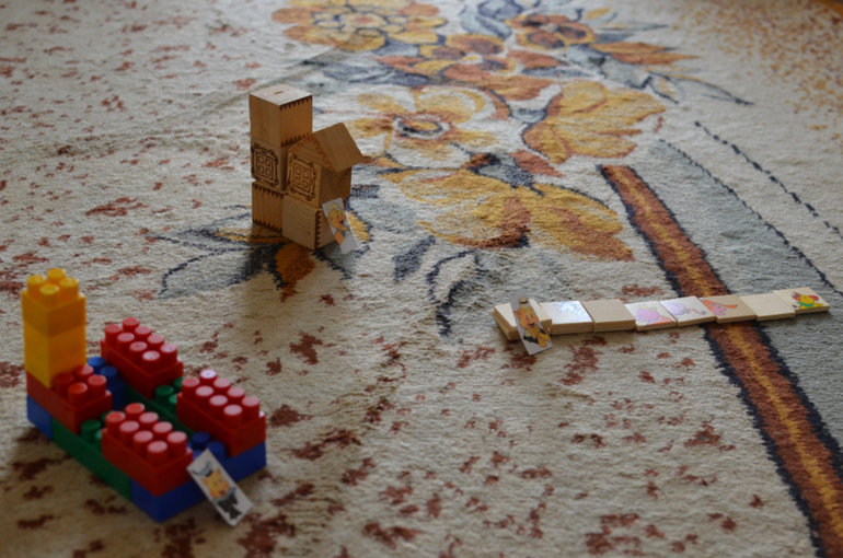 Третий дом самый крепкий, из конструктора. Этот дом мы строили по схеме, Максу не совсем было понятно, что детали нужно крепить именно в том месте, как на рисунке, и я ему немного помогла