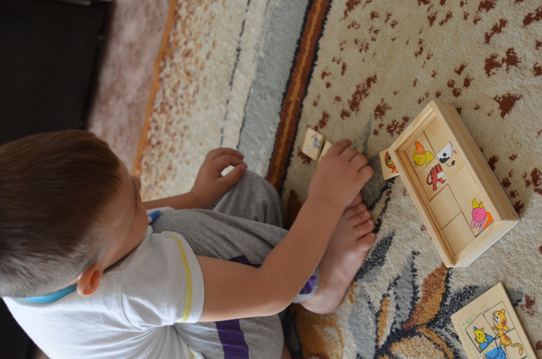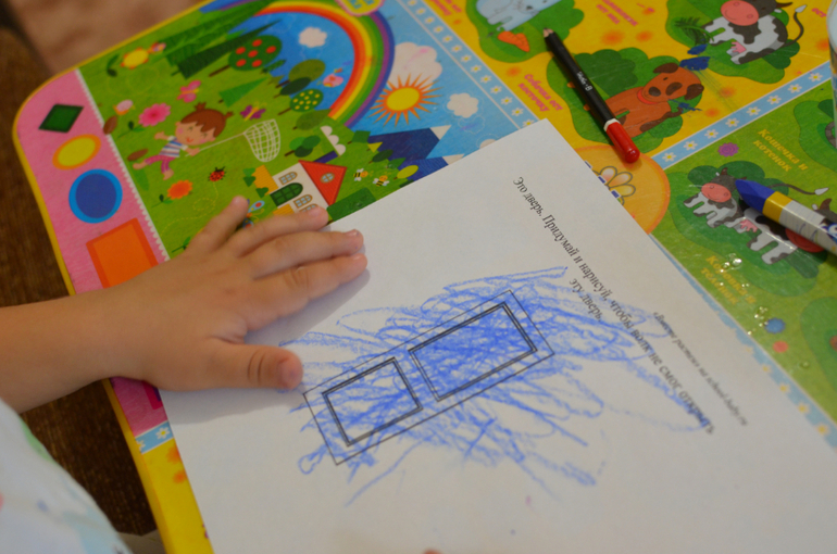 Дала ему листок, где нарисована дверь, сказала, что за дверью поросята, а волк хочет к ним зайти, и нужно придумать как сделать, чтобы волк не смог открыть дверь)) В итоге, Макс спрятал дверь в тучку, и волк пробежал мимо нее))