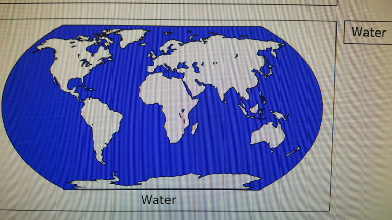 Начали сегодня с того, что воды на Земле оочень много, для наглядности рассмотрели карту, где синим цветом отмечена большая площадь.