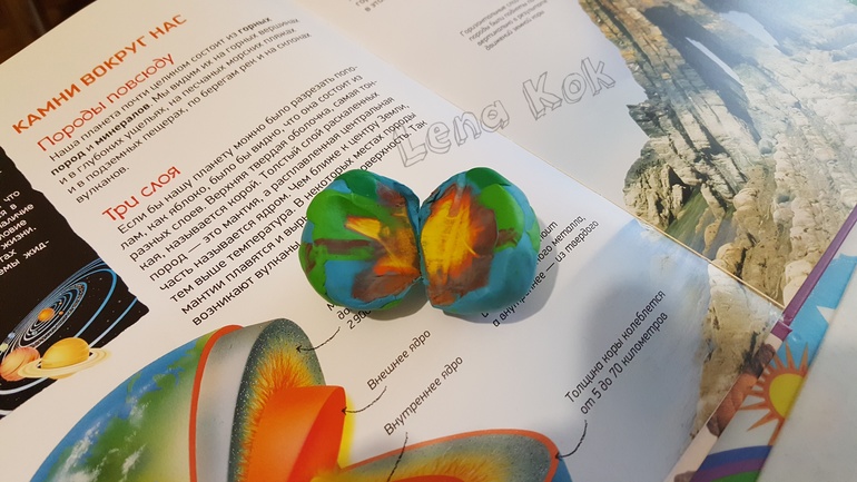 Сегодня мы изучали вулканы, эта тема для нас знакома, но углубить знания никогда не помешает) Конечно же разобрались как появляются вулканы, а для этого вспомнили, что же "внутри" Земли."Если бы нашу планету можно было бы разрезать пополам, как яблоко, было бы видно, что она состоит из разных слоев"